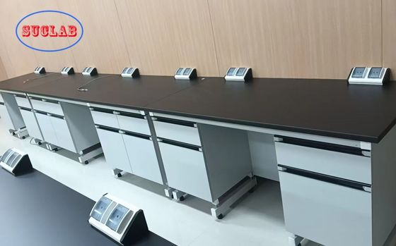 실험대는 흰색, 파란색, 노란색 및 검정색을 포함한 다양한 색상으로 제공되어 다양한 실험실 미학에 맞게 사용자 정의할 수 있습니다. 카운터 상판은 페놀, 에폭시 수지 보드, 세라믹, 스테인리스 스틸, Trespa, 화강암 또는 대리석 옵션으로 제공되어 특정 실험실 요구 사항에 가장 적합한 표면 재료를 선택할 수 있는 유연성을 제공합니다.
